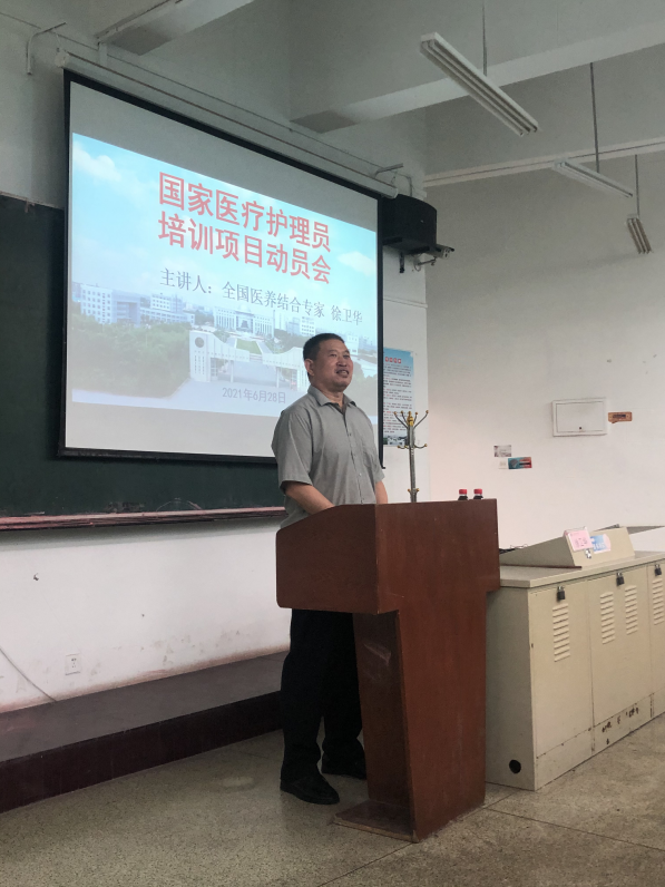 6月28日,在第一教学楼J101教室,3044永利集团组织召开了国家《医疗护理员》培训项目动员会,邀请全国医养结合专家徐卫华主任为来自护理公司、附属卫校和医学应用技术公司的百余名员工作了题为《构建医养康养相结合的健康支撑体系》的专题讲座。会议由公司党总支部书记董为主持。